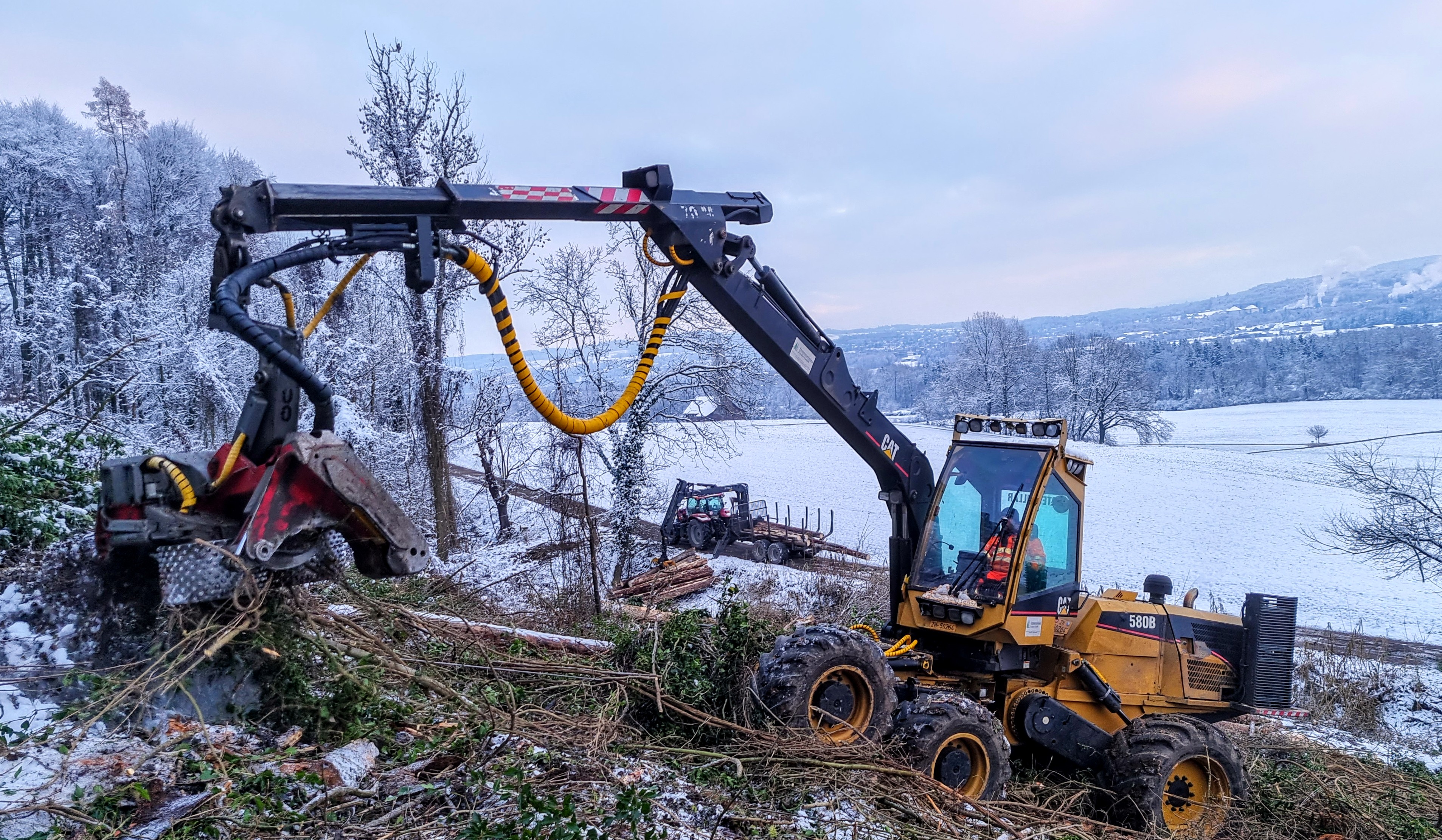Mit unserer langjährigen Erfahrung erledigen wir die Nutzholz- oder Brennholzernte im Gemeinde- oder Privatwald schonend und rationell.